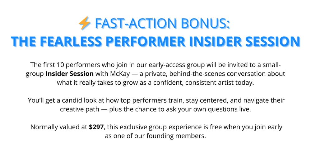 Apply now to join The Fearless Performer Lab and lock in your early-access rate of $350/month before public enrollment opens.