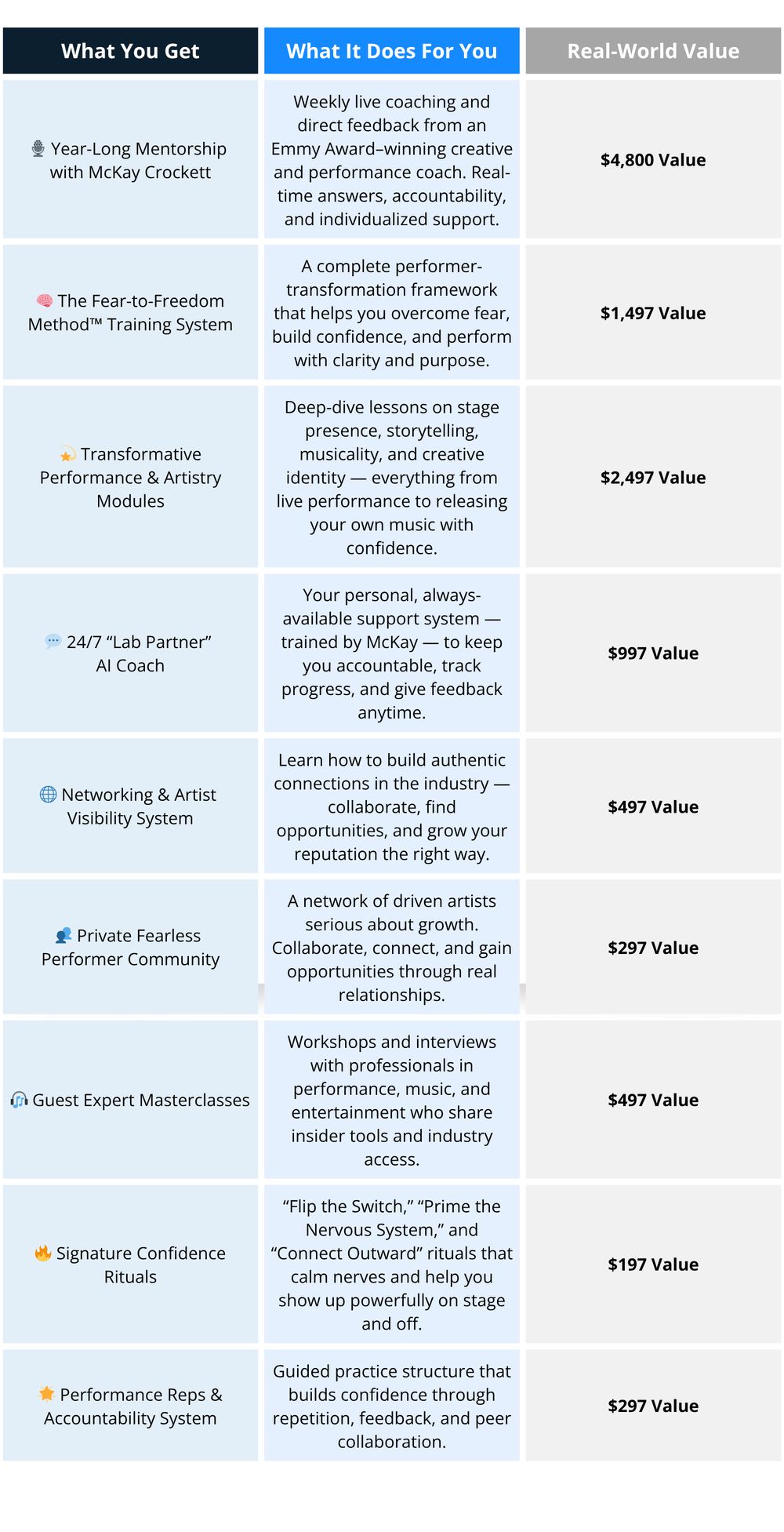 Weekly Coaching with McKay Crockett - Work with Emmy Award–winning coach and director McKay Crockett — whose experience with some of the biggest names and companies in entertainment has shaped performers at every level. In these live sessions, you’ll get personalized guidance, real-time feedback, and the kind of insight that accelerates growth and performance mastery.